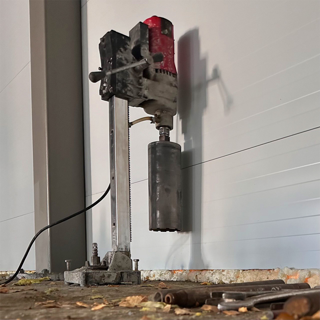 Мы используем оборудование для алмазного сверления с системой подачи воды, что позволяет предотвратить образование пыли во время работы.